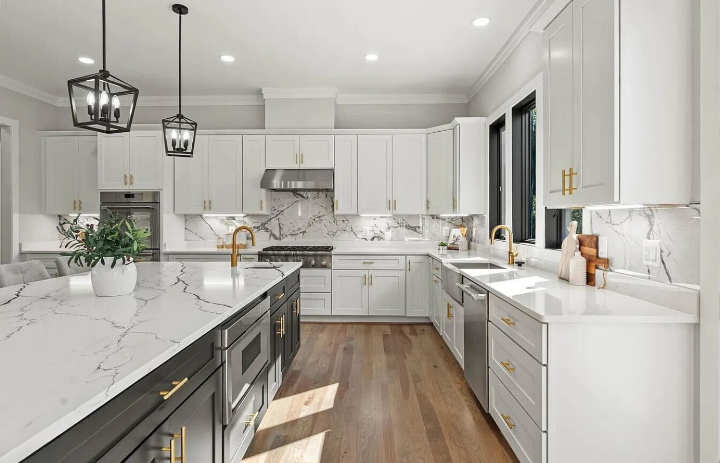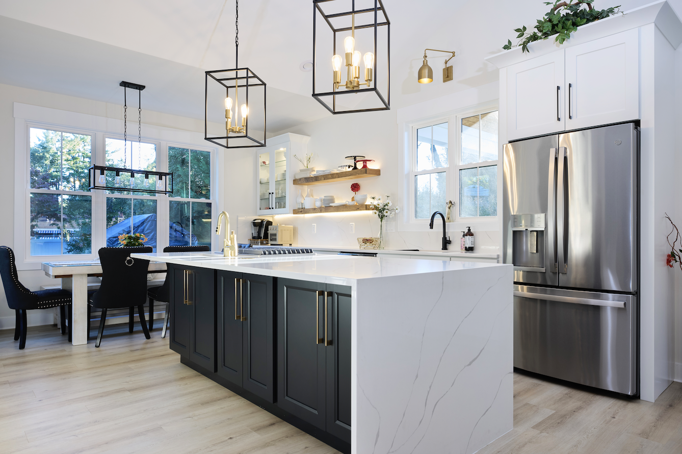 Task lighting, statement pendants, and ambient light are chosen to bring the kitchen to life.