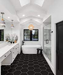 We determine the material first. Porcelain tile or wood-look LVT and then select the color for durability, warmth, and overall tone.