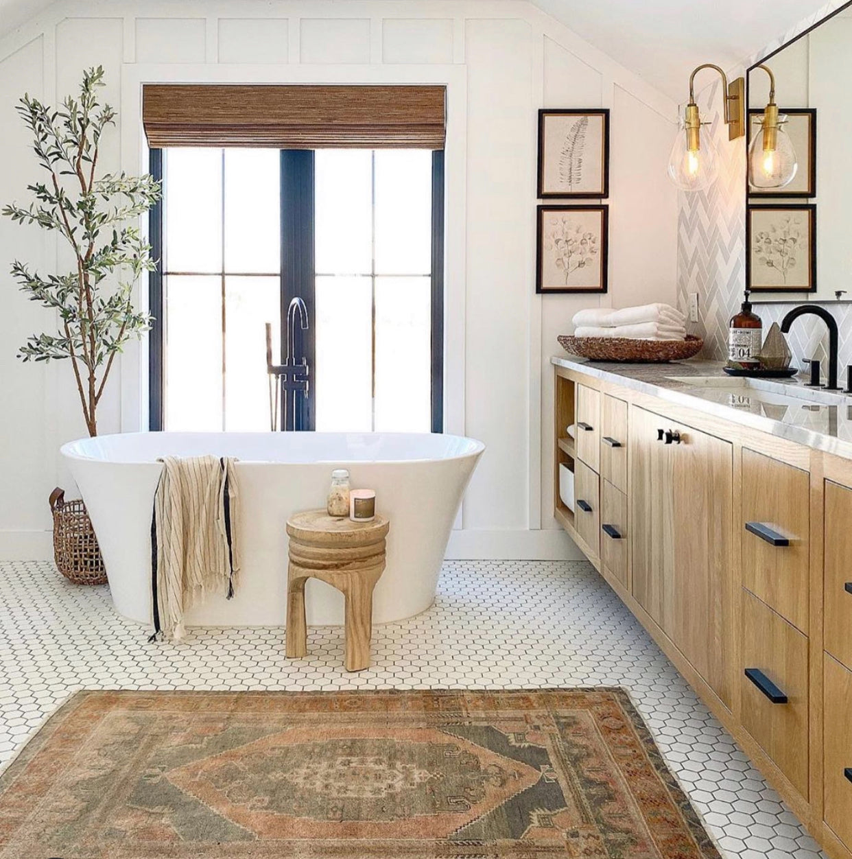 This is where texture, pattern, and movement come in — tying the cabinets and flooring together into one cohesive story.