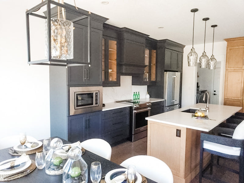Task lighting, statement pendants, and ambient light are chosen to bring the kitchen to life.
