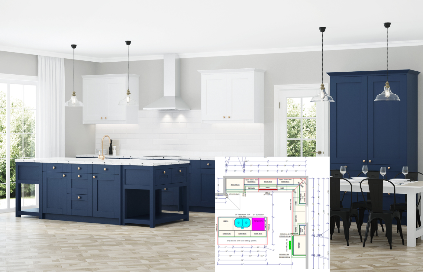 Visualize your new kitchen or bath before you buy. See your cabinet layout from every angle with photo-realistic 3D renderings.