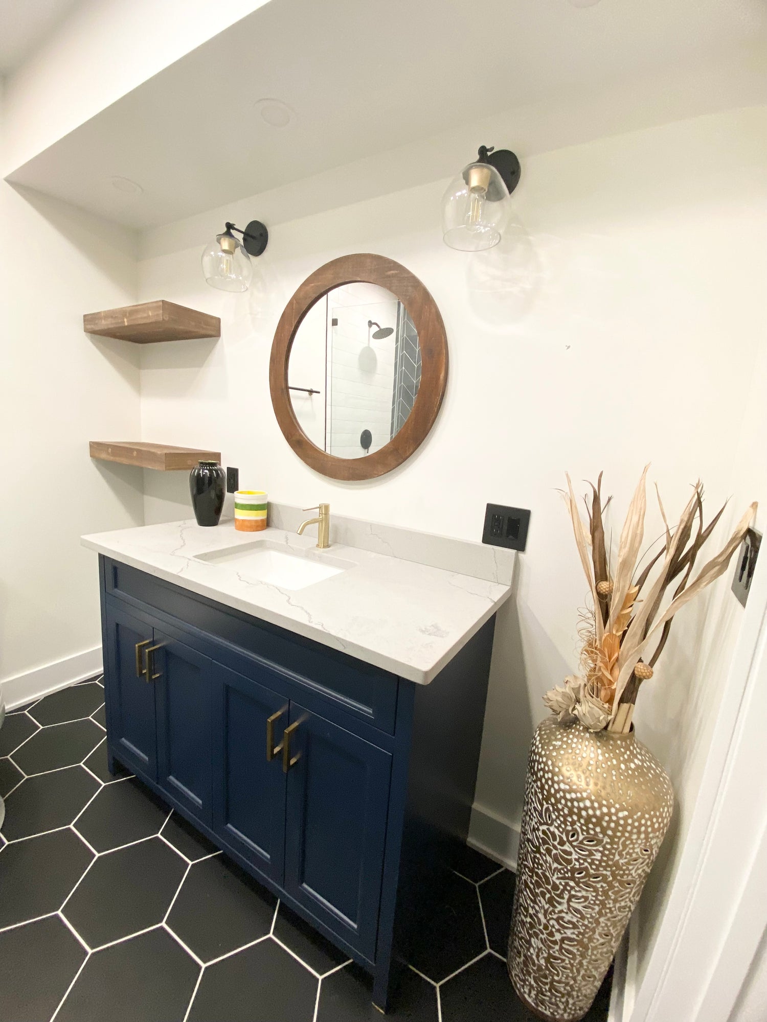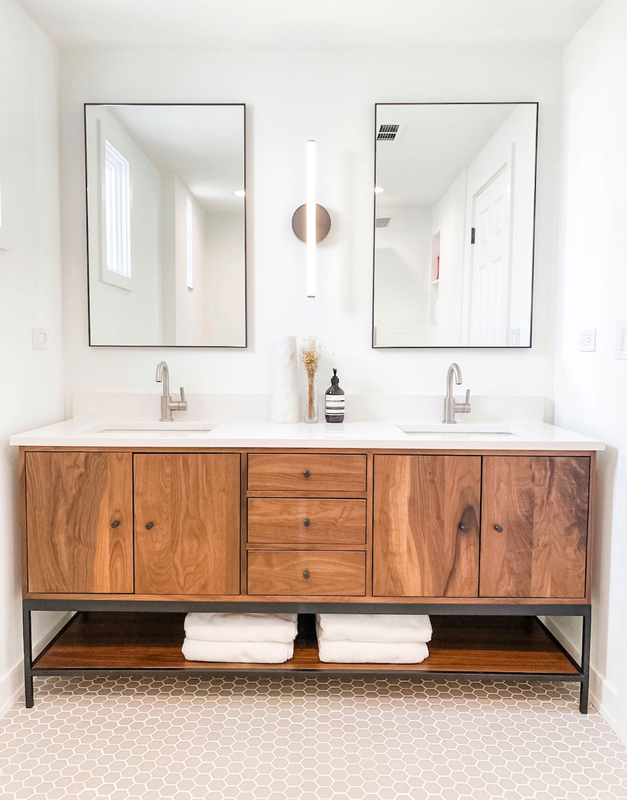 The vanity sets the style direction for the entire bathroom. Modern, traditional, floating, furniture-style, light, dark, or wood tone. Everything else keys off this decision.
